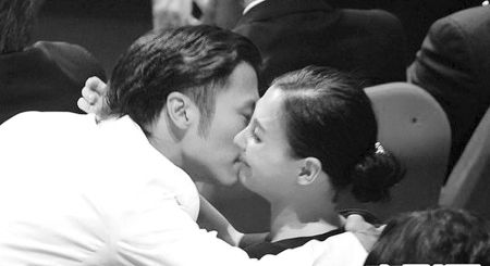 2011年4月在獲得金像獎(jiǎng)影帝殊榮后,謝霆鋒與張柏芝激動(dòng)擁吻