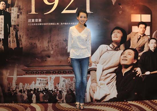 李沁在《建黨偉業》巨幅海報前留影