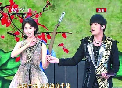 周杰倫和林志玲的“混搭組合”,兩人配合相當默契,當歌曲《蘭亭序》音樂響起,周杰倫率先登場,他一邊唱歌一邊也在歌曲間隙玩起小魔術。他用扇子“變”出坐在椅子上的美女林志玲,林志玲化身古典美人在旁舞著紅綢伴舞。節目表演完后,林志玲被董卿留在臺上,董卿向林志玲請教怎么被變出來的,她卻先問舞蹈演員是怎么懸空而坐的,董卿老老實實解釋完后,林志玲卻調侃董卿說:“其實呢,當托你可比我在行啊!”這樣還不過癮,林志玲要求“變一段魔術給大家看”,她展現的正是經典魔術“大變活人”,只見她在舞臺上邁著模特步走來走去,從舞臺上的大箱子中變出一個少女,還發嗲說:“不勞煩大家破解啦,我自己來揭秘!”一邊給大家破解“大變活人”,一邊“請”出了“臺灣全能魔術師”丁建中。