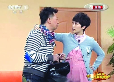 今年,趙本山與弟子王小利、小沈陽等表演小品《同桌的你》直到第五次彩排才露出廬山真面目。在這個小品中,趙本山將大多數臺詞和包袱讓給了徒弟們,自己退居二線。節目臺詞如“我們一起走進苞米地,此處省略72字”等,讓觀眾捧腹大笑。節目最后,小沈陽還唱起了歌曲《同桌的你》。在整個小品中,小沈陽的表演相對而言比較出彩,節目中的很多包袱也都是由他貢獻出來。記者仔細看后,發現今年果然沒有廣告植入了,但卻乏善可陳。趙本山也被不少觀眾指責“吃老本”。