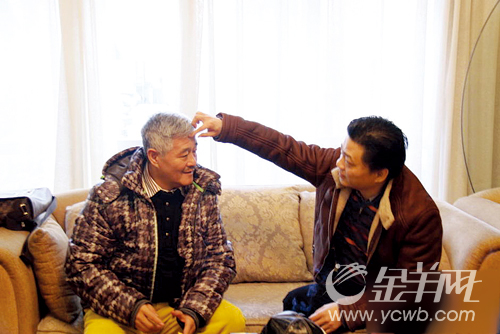 上圖:小崔想給本山拔白頭發(fā),卻無從下手。
