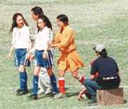 完成在港的演唱會之后,莫文蔚才休息一日,就馬上聯同張柏芝到珠海為周星馳電影《少林足球》客串,而且還秉承電影《食神》之傳統,不演花瓶角色大玩型格,與張柏芝兩人貼上胡須扮型男,再加上周星馳親自為兩位靚女于發型與化妝上設計新意思,一身白波衫加古烈治頭,再于面上畫多撇彩色油彩,令她們形象更見突出。由于造型特別,周星馳謝絕所有傳媒探班,更特別改到珠海另一球場拍攝,但絕密造型最后都要公諸于世!今次張柏芝與莫文蔚到珠海拍戲,亦打破了之前有傳兩人因檔期緊迫無法為《少林足球》客串之傳聞。