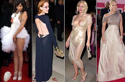 影集『X檔案』的女主角基蓮安德森,也夠勁爆,為了替她的好身材大作廣告,一席海軍藍露背長禮服,低露到股溝不說,還秀出她的丁字體內褲,你想她是故意還是有意?這一露可更引人遐思呢! 珍妮佛·洛佩茲繼去年以一襲超暴露的凡賽斯洋裝在葛萊美獎轟動全球后,今天走在奧斯卡紅地毯上,則是以透明沙龍圍在上身,在攝影機的登光之下,胸前風光一覽無遺的展露在億萬觀眾眼前。咱們寇特妮拉芙一邊已經露點的乳頭,可比珍妮佛更招搖!不知道大會為什么沒頒給她一張「看光光」獎章,可惜!