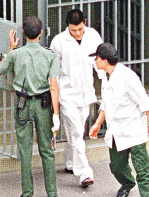 昨晨約十一時二十分,謝霆鋒穿上不太合身的白色病人衫褲,白褲有點“拖地”,由一名拘留所職員押送離開醫(yī)院,進(jìn)入毗鄰另一幢建筑物,逗留了八分鐘便折返醫(yī)院。其后他換上灰色短袖囚衣,在三名人員“品”字形護(hù)送下,再次離開醫(yī)院,相信是前往會見室與父母見面,約半小時后,又被送回醫(yī)院。