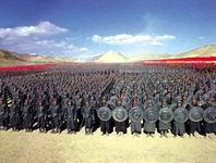 場(chǎng)景:秦軍浩浩蕩蕩,一眼望不到邊,所到之處,塵煙滾滾。