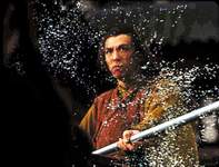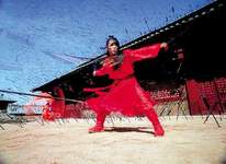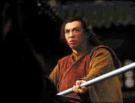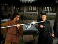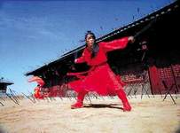 制作說明:在這個(gè)場(chǎng)景中,只有在房上和地下一些固定的箭是原來就有的,在空中飛舞讓無名和飛雪抵擋的箭全是電腦制作出來的。特技人員做的另一件事是在背景中加入了一些建筑;此外,在飛雪的身上加入了運(yùn)動(dòng)模糊效果。