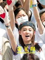 上圖:譚詠麟、張柏芝在“抗炎關懷日”上