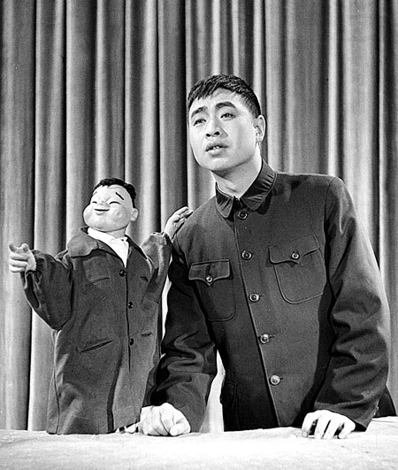 馬季的相聲表演獨(dú)具特色,圖為馬季在1965年拍攝的木偶片《畫像》中演出。