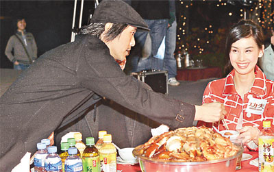 綜合港臺消息,周星馳自導自演的《功夫》,上映三十九日票房達六千零二十萬,電影公司為回饋觀眾,昨晚在奧海城舉行“功夫千人群雄宴”,更有醒獅及大抽獎,觀眾可謂又吃又拿,更不介意冒雨捧場。 周星馳主演的電影《功夫》在各地上映均獲佳績,昨晚在奧海城露天廣場筵開八十六席名為“功夫千人群雄宴”的盆菜宴招待觀眾,好讓觀眾與他拉近距離,及與片中演員歡聚一番。而每席盆菜約花費八百多元。 雖然昨晚天公不作美,整晚都有下雨,到晚上七時雖未開席,但已有七、八百人到場,更有日本和韓國Fans專程來捧場。星爺率領一眾戲中演員黃圣依、元秋和陳國坤等踏上紅地毯,現場更有醒獅、小朋友耍功夫等表演及大抽獎,臺上亦展出一對“功夫屢創新紀錄,星勢橫掃全世界”的對聯,星爺見到小朋友耍功夫時即表示從沒想過要生小孩。但當上菜時,眾人只顧品嘗盆菜中的花膠鮑魚等美食,星爺在臺上向觀眾敬酒也沒人理會,但當他下臺時即引起眾人包圍要求拍照及簽名,更大贊他像李小龍,逗得星爺十分開心。 估計可自破紀錄 對于《功夫》現時的票房已達六千零二十萬,估計可以打破三年多前《少林足球》六千零八十萬的票房紀錄,星爺笑謂多謝各界支持,并會請食飯慶祝。 美國上映受寵若驚 問到圣誕假期上映的《功夫》會否延續至賀歲檔期放映,他表示自己剛從美國返港,對此并不清楚,一切由電影公司安排。提到早前他到美國出席此片首映,完場時觀眾竟齊齊起立拍掌五分鐘,星爺坦言感到受寵若驚,更笑笑口地說:“當時有人向我表示,首映出現這種反應是美國廿五年來第二次,令我好開心!” 投訴鮑魚太薄 問及有觀眾投訴鮑魚太薄時,他就說不清楚,這個要問電影公司。只要有心就行了。事后他在臺上更夾起鮑魚笑說:“哇!好厚呀!”十分搞笑。 |