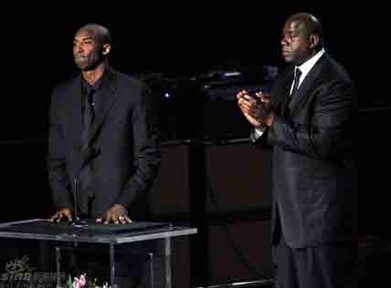 科比和魔術師約翰遜上臺悼念