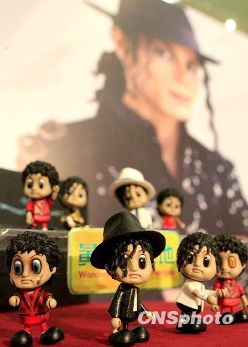 七月二十九日,為紀(jì)念流行音樂(lè)之王邁克爾杰克遜五十一歲冥壽,杰克遜全套珍藏版模型在香港一家商場(chǎng)首次亮相。