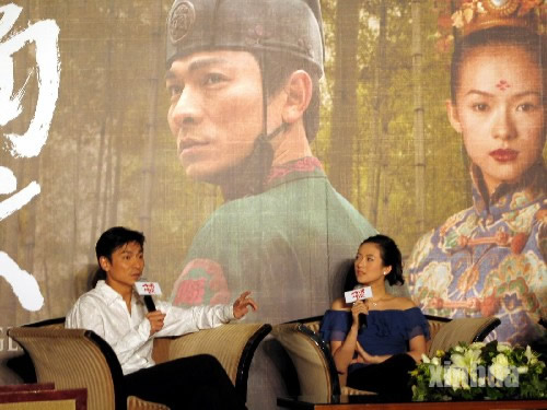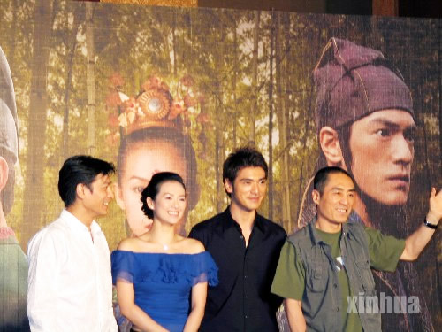 7月14日,影片《十面埋伏》導演張藝謀及主演金城武、劉德華、章子怡與臺灣媒體見面。影片《十面埋伏》當晚在臺北故宮博物院門前廣場舉行臺灣地區首映式。 新華社記者 李海堂 攝