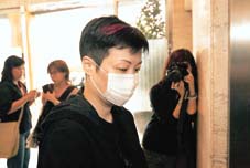 哭至眼腫的張綠萍在哥哥寓所中會見記者