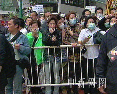 中新網4月8日電 香港著名藝人張國榮8日中午舉殯,近千名歌迷影迷冒雨在殯儀館外,目送“哥哥”的靈柩由靈車送往火葬場火化。