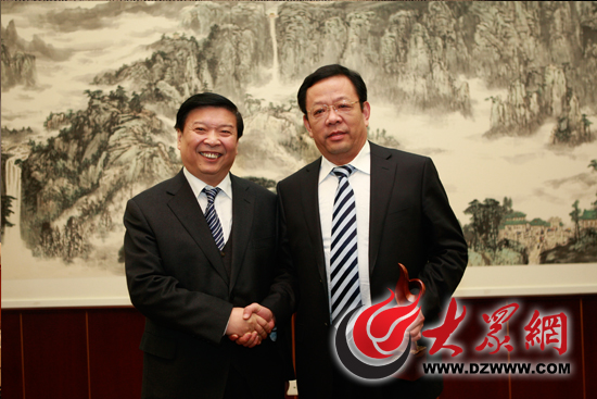 山東省省委副書記、省長姜大明與利華益集團股份有限公司徐云亭親切握手