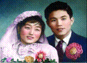 這是一張攝于196 3 年秋天的著色結(jié)婚照,新郎宗長海穿著西裝,打著領(lǐng)帶,新娘徐桂榮披著粉色婚紗,手捧塑料花。兩個人的共同點是胸前都掛著大紅花。據(jù)徐桂榮女士介紹,她和丈夫青梅竹馬,在一個大院里長大, 成年后自由戀愛。2 2 歲的時候,她與大學(xué)畢業(yè)后分配工作的丈夫在家中舉行了婚禮,當時正值生產(chǎn)救災(zāi)時期,糖果要憑糖票購買,布料要憑布票購買。因此婚禮辦得很簡單,她是坐著租來的三輪車出嫁的。但丈夫能詩會畫, 是個講求生活情調(diào)的人, 于是在婚后第二天,兩位新人去大觀園泰云照相館拍了這張著色結(jié)婚照以留念。今天看來, 這張尚未退色的著色結(jié)婚照應(yīng)該算那個特殊時期留下的奢侈品了。