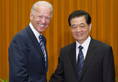 8月19日下午,中國國家主席胡錦濤在北京人民大會(huì)堂會(huì)見美國副總統(tǒng)拜登。拜登是應(yīng)國家副主席習(xí)近平的邀請(qǐng),于8月17日至22日對(duì)中國進(jìn)行正式訪問。