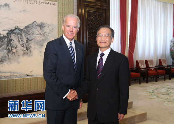 新華網北京8月19日電(記者郝亞琳、劉暢)國務院總理溫家寶19日在中南海紫光閣會見美國副總統拜登。
