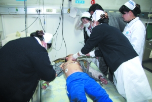 圖為醫(yī)護人員在搶救受傷學(xué)生。新華社發(fā)