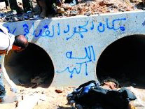 執(zhí)政當局士兵手持繳獲的卡扎菲鍍金手槍慶祝。利比亞執(zhí)政當局士兵圍觀卡扎菲藏身的下水道。據(jù)新華社電 利比亞“全國過渡委員會”20日確認,穆阿邁爾卡扎菲在家鄉(xiāng)蘇爾特落入執(zhí)政當局武裝之手,最終傷重不治。