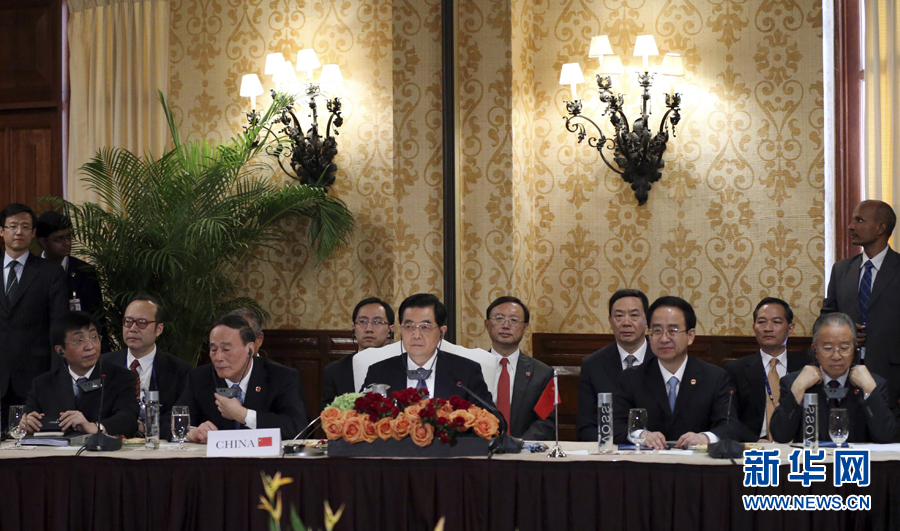 6月18日,國家主席胡錦濤在墨西哥洛斯卡沃斯出席金磚國家領導人會晤。 新華社記者蘭紅光攝