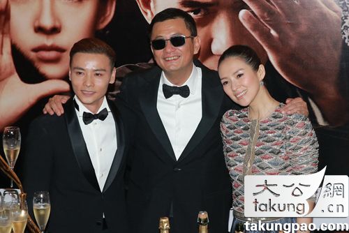 圖:章子怡(右起)、王家衛和張晉為《一代宗師》奪十二個獎項慶祝