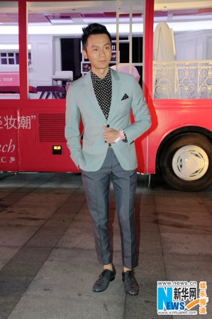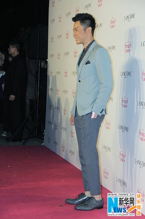4月28日晚,李晨現身上海某品牌時尚派對。當晚,李晨一身湖藍色西裝,搭配灰藍色西裝褲踏上紅毯,優雅時髦,變身上海灘的摩登紳士,與粉嫩鮮花并立,盡顯浪漫情懷。