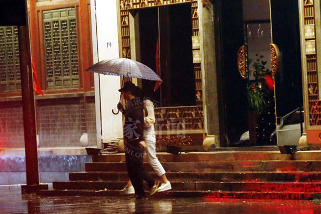 同撐一把傘的二人也返回了同一家酒店。即將進入酒店門的時候,二人“分離”開來,霍建華戴上了帽子,把雨傘還給葉璇,而后撒開了牽在一起的手,并排上了樓。