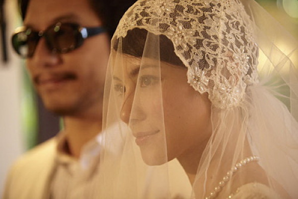 導演彭順與嫩模相互喂食