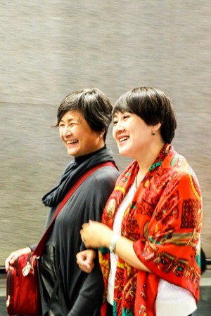 走出地鐵的兩姐妹