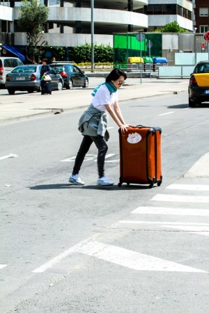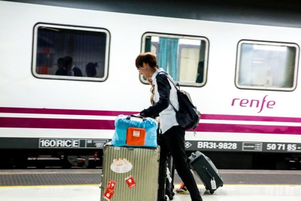 即將轉場去馬德里,佩佩姐一馬當先拿行李進火車站