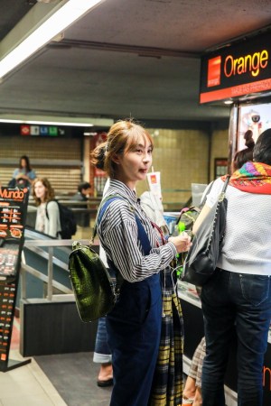花少成員坐地鐵,稍作停歇小憩