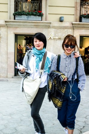 姐妹倆在巴塞羅那的街頭