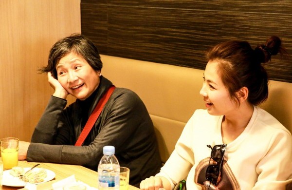 寄存完行李的許晴跟佩佩姐在交流