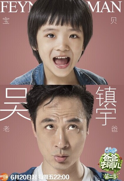 將于6月20日晚10點湖南衛視播出的《爸爸去哪兒》第二季今日發布笑臉海報,吳鎮宇、黃磊、陸毅、曹格、 陸毅父女。”由于吳鎮宇生活一向低調,2009年兒子Feynman出生,至今很少在媒體露面,所以這次參與《爸爸去哪兒》將會是兒子的首次熒幕曝光。