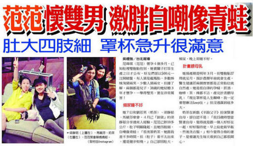 (李巖)據(jù)臺(tái)灣媒體報(bào)道,范瑋琪懷孕4個(gè)多月,已知肚里雙胞胎性別,她賣關(guān)子打算生產(chǎn)之日才公布,好友們卻以500元一注開賭盤,有人猜是龍鳳胎,多數(shù)姐妹淘猜兩男,少數(shù)人猜兩女。