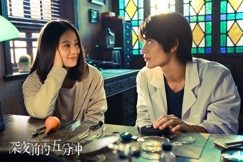 《深夜前的五分鐘》故事圍繞著劉詩詩飾演的雙胞胎——外表溫柔卻埋藏著心事的若藍(lán)和活潑熱情的演員如玫,與三浦春馬飾演的謙卑溫暖的鐘表店學(xué)徒阿良、張孝全飾演的事業(yè)有成的霸道熟男天倫之間展開。外貌一模一樣又具有心靈感應(yīng)的姐妹之間由于從童年互換身份開始的一系列“我選擇的人生總是被她搶走”而暗生隔閡……一場異國他鄉(xiāng)的海難,使姐妹倆只回來一個人。回來的到底是誰?她該如何自處?故事?lián)渌访噪x,懸疑愛情交織。