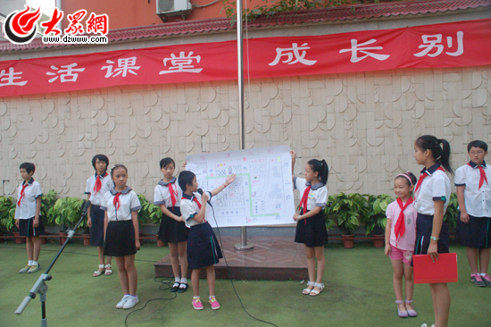 在開學典禮上,棋盤街小學高年級同學與大家一同分享自己的暑期實踐成果
