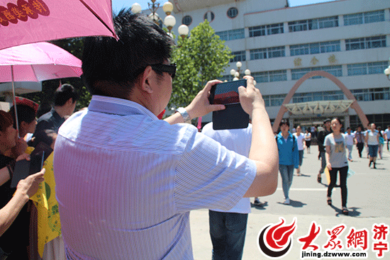 濟寧育才中學考點外,記者發現家長們在難熬的陪考過程中會舉起手機或者相機,拍攝一些考場附近的圖片。