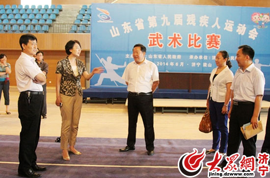 大眾網濟寧6月19日訊(記者 高楊 通訊員 邵天斌)山東省第九屆殘疾人運動會武術比賽將于6月22日至24日在梁山縣體育館舉行。今日上午,濟寧市政府辦公室調研員李國山、市殘聯理事長郭慶林等一行赴梁山督導省九屆殘運會武術比賽項目籌備工作。