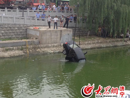 濟寧:轎車失控墜入河 老運河上展開生死營救