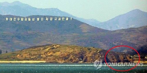 紅色圈處為朝鮮海岸炮隱藏防空洞(來源 韓聯社)