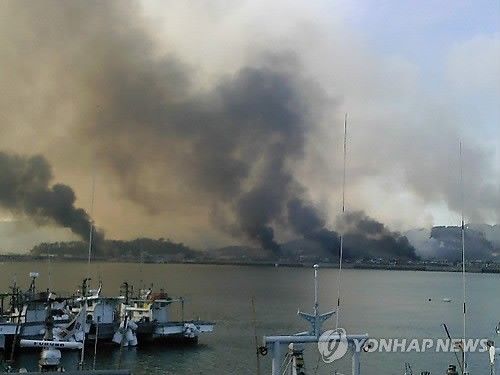 炮擊后硝煙彌漫的延坪島(來源 韓聯社)
