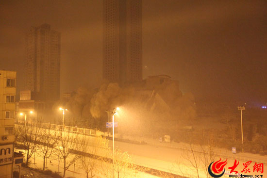起爆后3秒鐘內(nèi),齊魯賓館樓體向經(jīng)十路方向傾倒