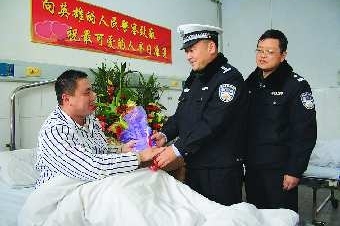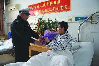 據(jù)在場的一名民警介紹,每次執(zhí)勤的時候,他們倆都沖在最前面,敢于與歹徒搏斗。特別是劉峰,這已經(jīng)是第三次受傷住院了。他們還沒把受傷的情況告訴父母!笆軅,趙偉的父母曾經(jīng)打電話過來問過他,因為怕家人擔心,他沒有和父母說,直到現(xiàn)在他的父母也不知道他受傷的事情!痹撁窬f。醫(yī)護人員告訴記者,撞車后,他們倆的胸部和腰部都不同程度地受了傷,所幸傷情不是很重。