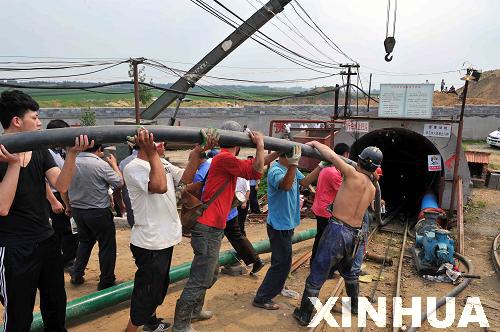 救援人員在向井下運送管道