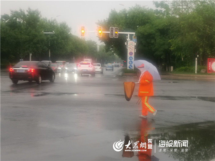除了楊振軍,記者當天下午還在街頭看到不少環(huán)衛(wèi)工人,他們或是冒雨打傘巡查,或是雨小后繼續(xù)工作,他們工作的身影是這雨天最美的一道風景。